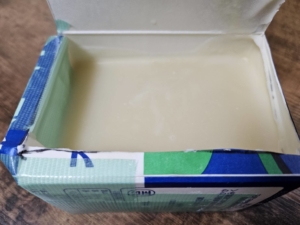翌日(または2~3日後)に牛乳パックの型を切り開き、お好みの幅にカットします。